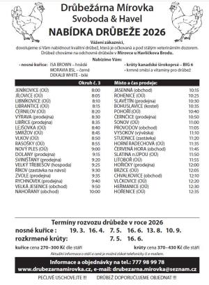 Objednání je možné na tel.: 777 98 99 78 nebo drubezarna.mirovka@seznam.cz.