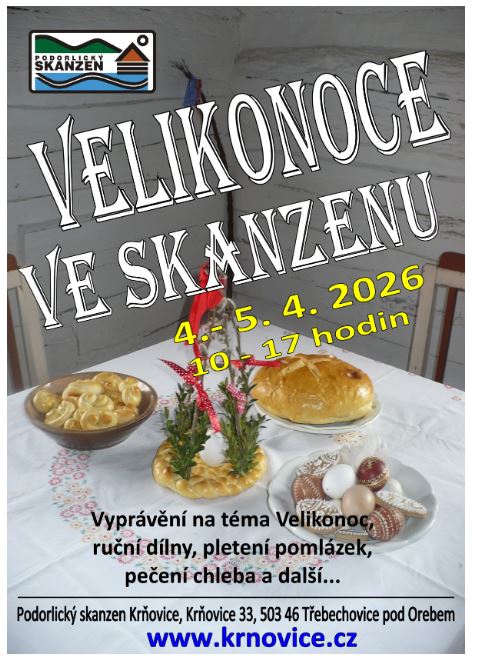 Podorlický skanzen Vás srdečně zve 4. a 5. dubna v čase 10-17 hodin na Velikonoce do skanzenu. Čeká Vás tématické vyprávění, ruční dílny, pletení pomlázek, pečení chleba a další.